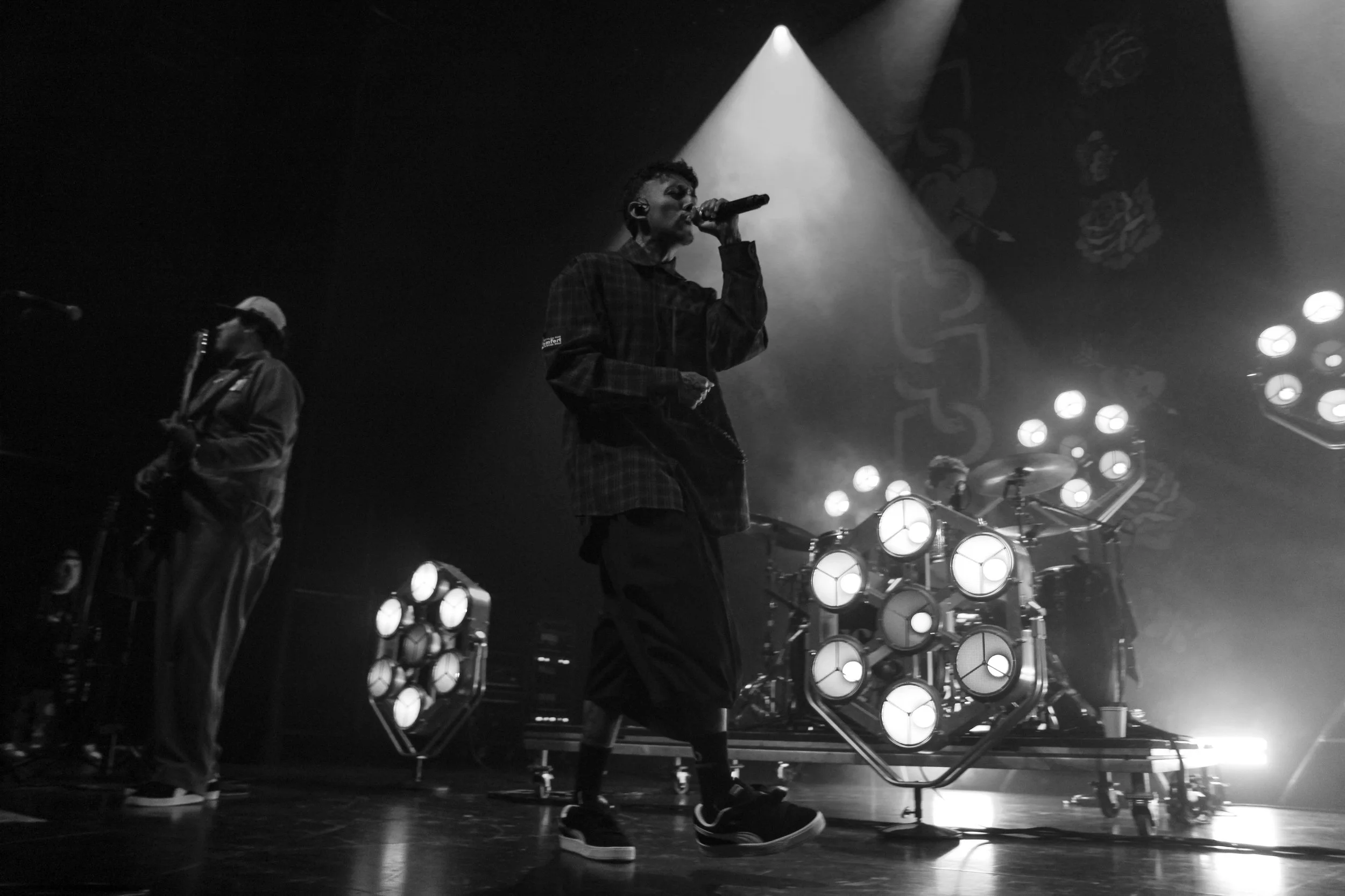 By the time doors opened, the line was already wrapped around the venue with fans eagerly waiting to go inside. When the lights finally dimmed, deafening screams filled the room as Cuco and his band took the stage. He opened with his most recent album’s title track “Ridin’”, before flowing into “Phases” and a heartfelt cover of Bobby Capó’s “Piel Canela.” This set the tone for a show that moved seamlessly between English and Spanish songs.