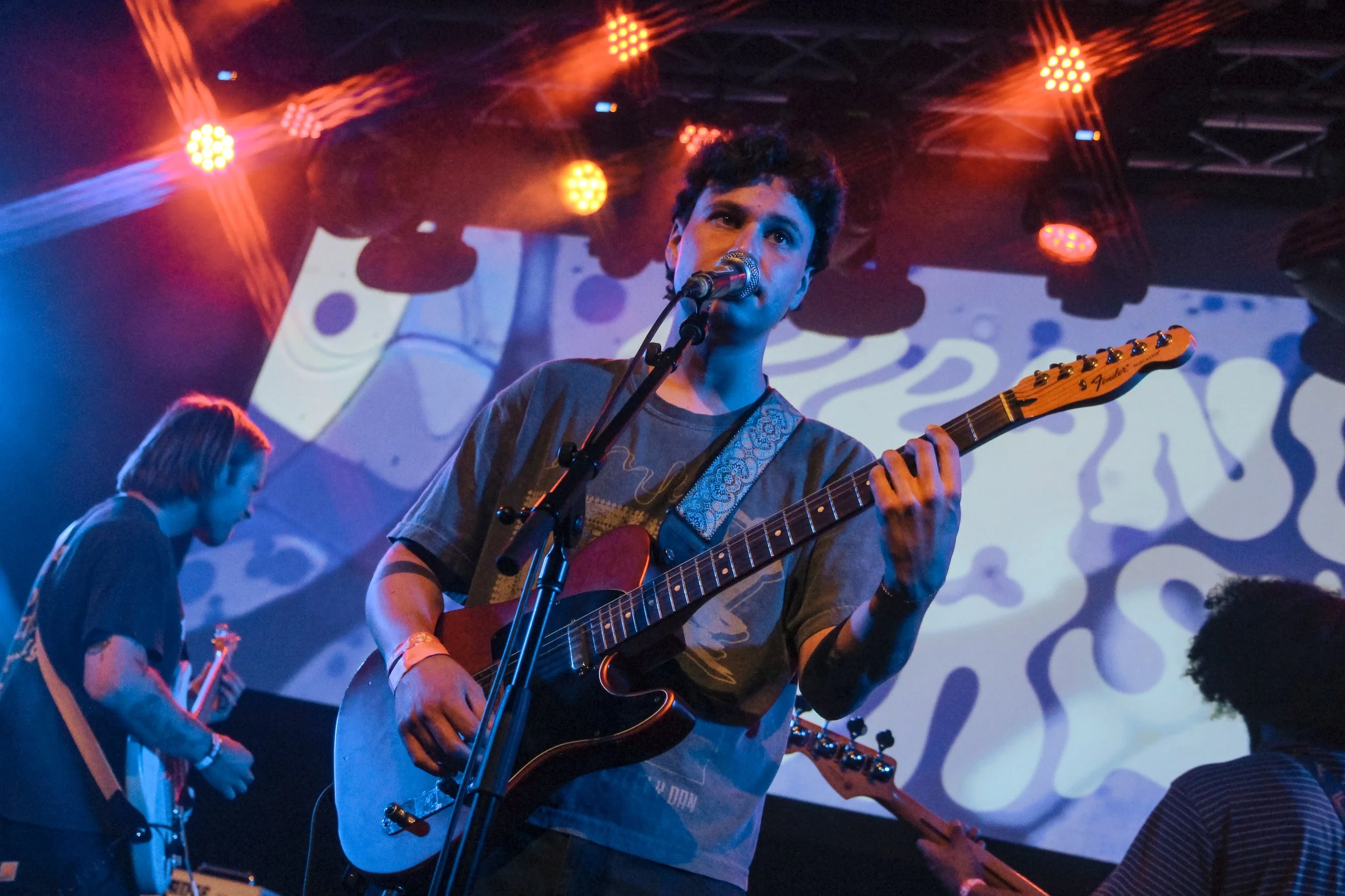 The lead singer, Yeatman, immediately caught my attention with his great stage presence, as he jumped around the stage to the music during instrumental breaks. The rest of the band definitely matched his energy, making it hard to decide who to point my camera to. You could also tell that they had great chemistry together as a band, often interacting with each other on stage while performing and overall giving a very high-energy performance.